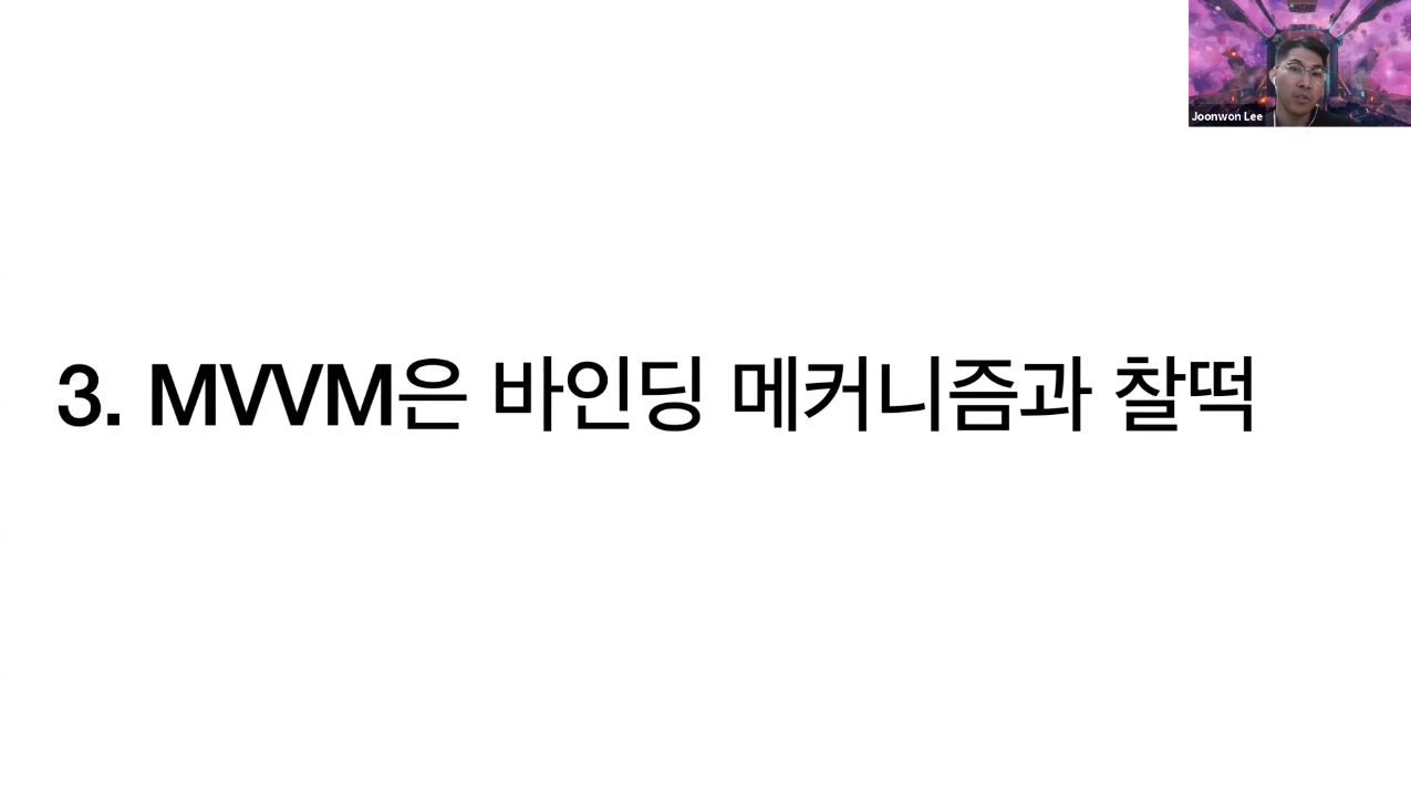 그래서 뷰와 모델을 떨어뜨리고자 하는 목표를 세우게 되었고, MVVM이 등장하게 됩니다!