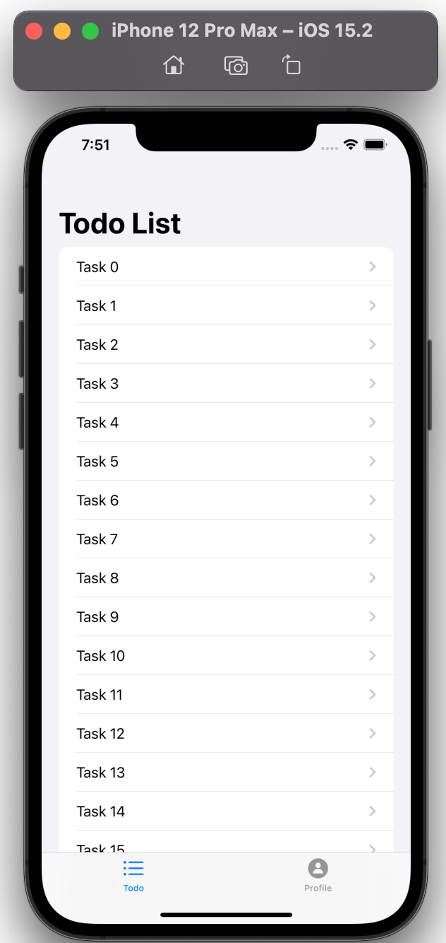 Finally, to make tab view contains todo list and profie view, check this code. You can find 'SwiftUIDeepLinkApp.swift' file in my full source code.