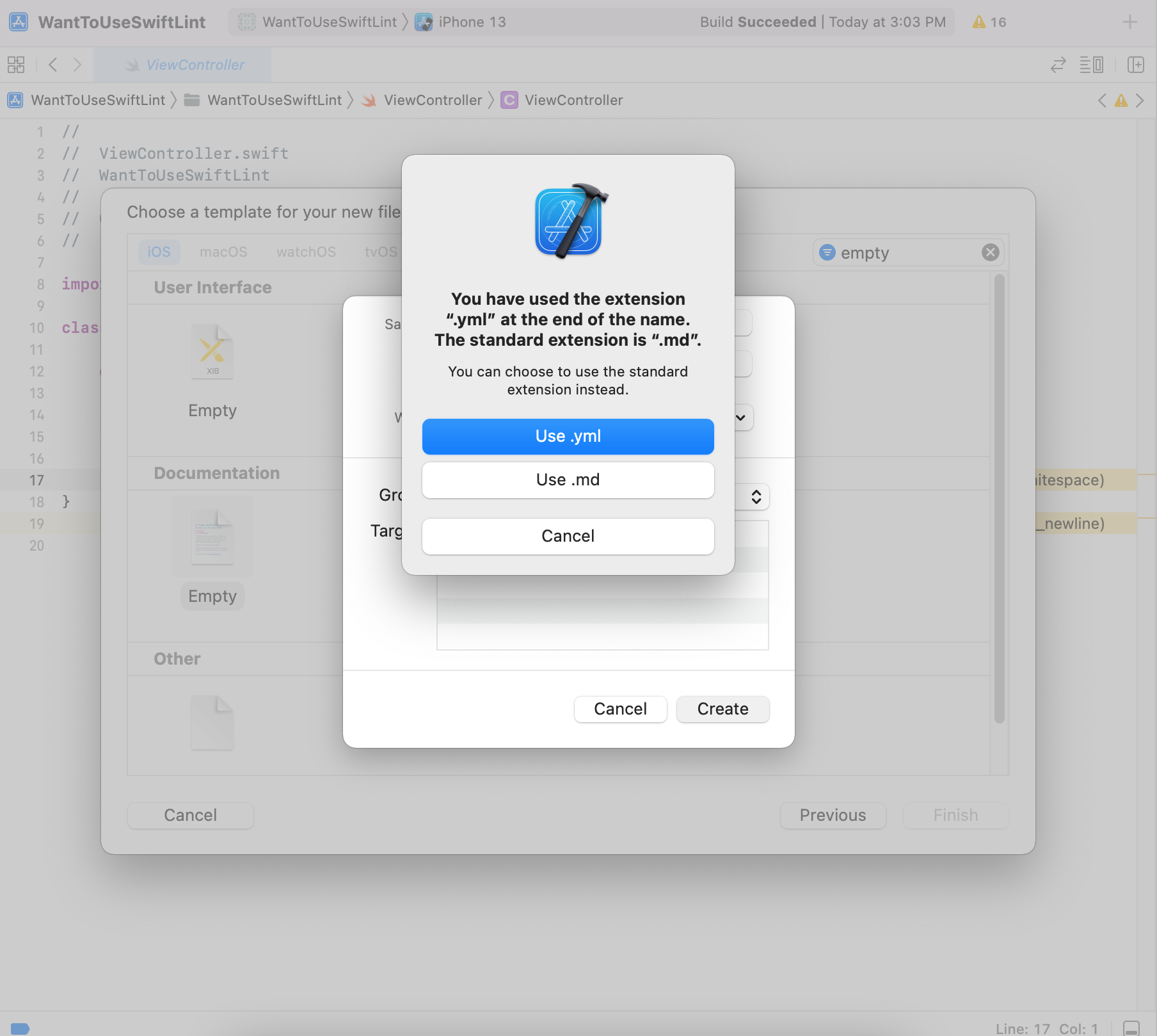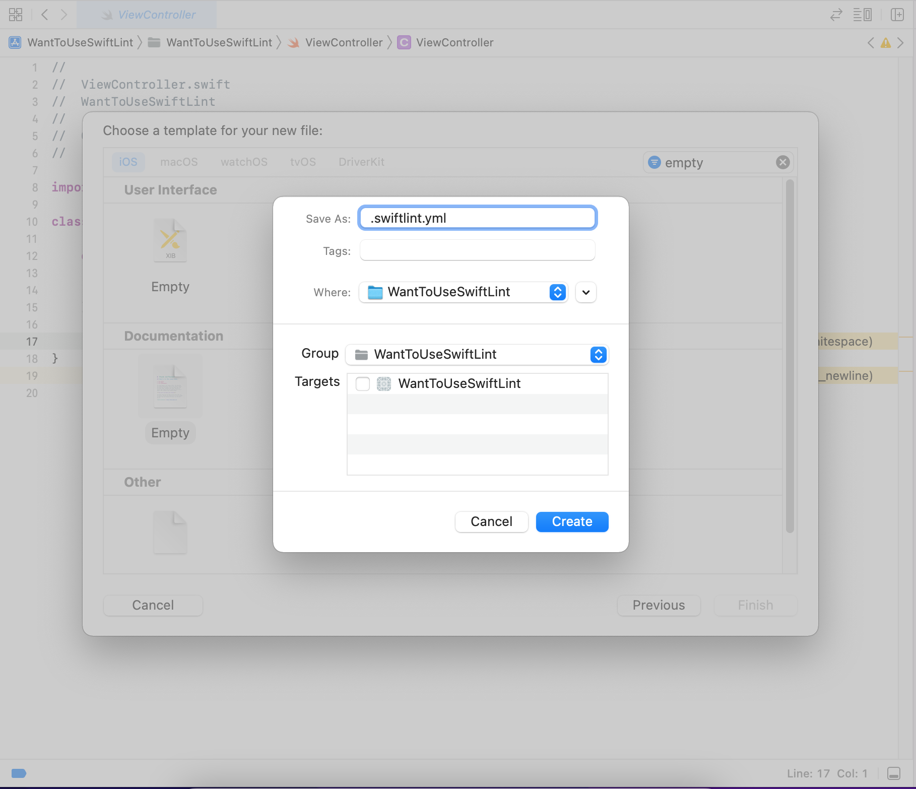 If you installed SwiftLint successfully, then let's make a Xcode project.