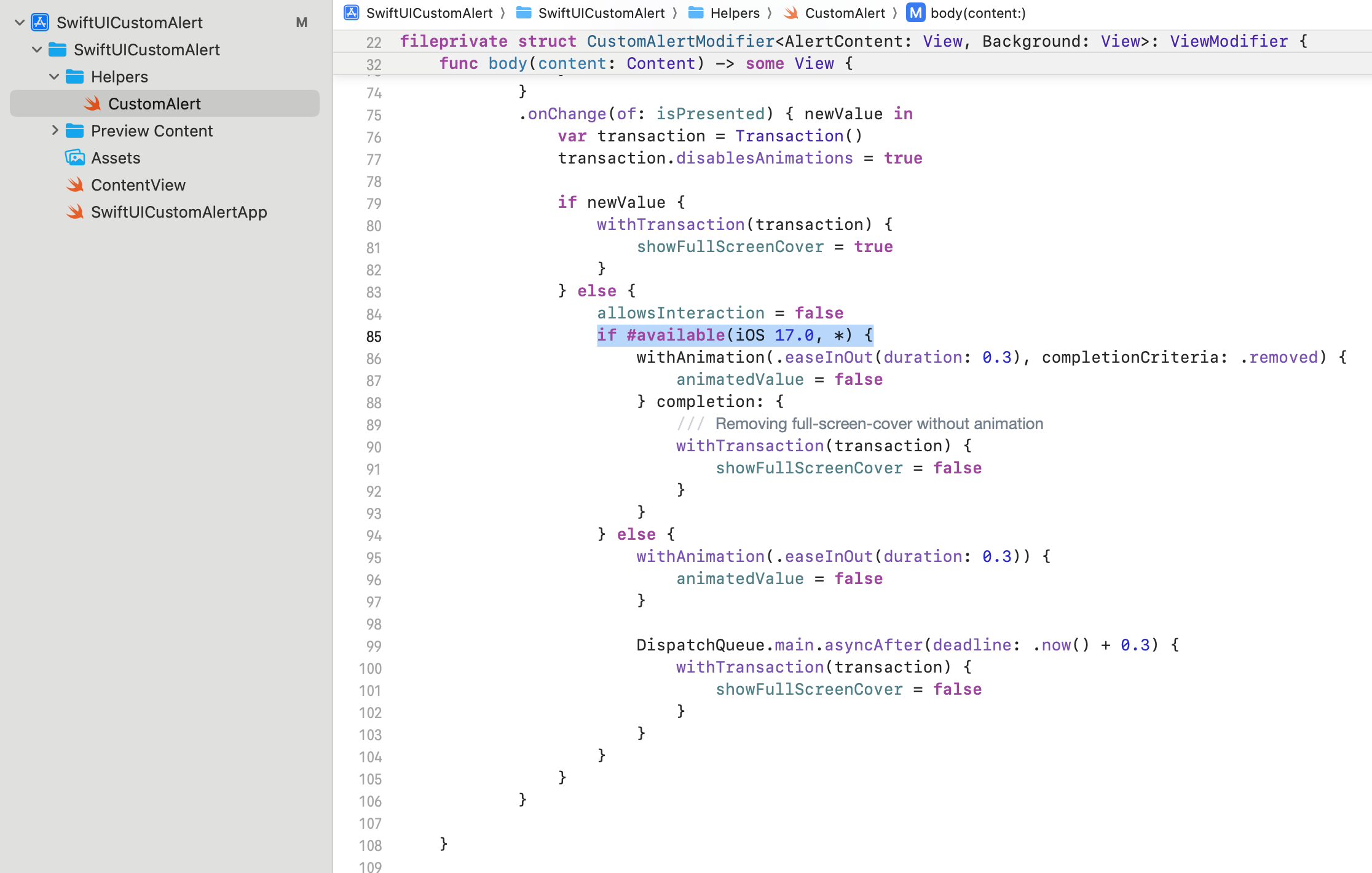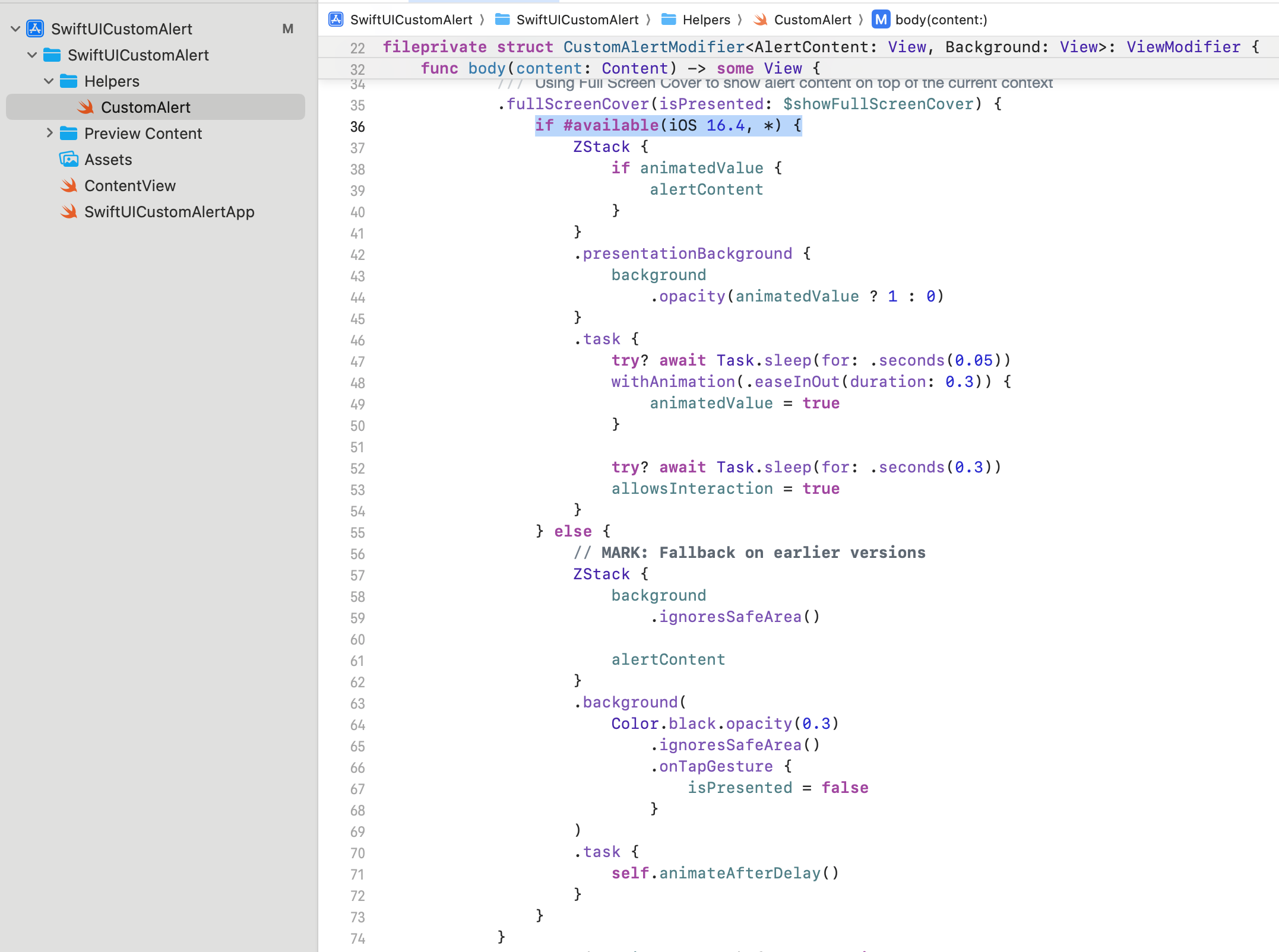 https://github.com/TDCIAN/SwiftUICustomAlert